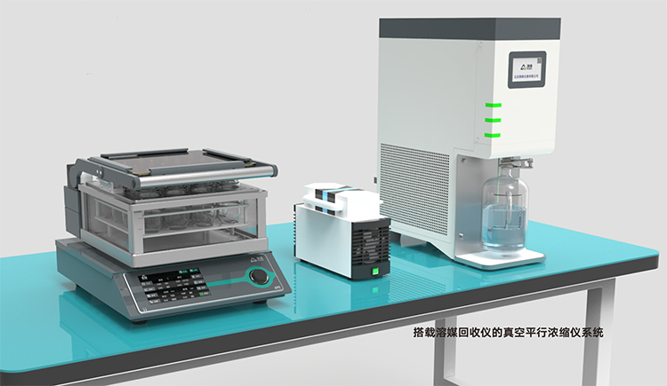 “干式”低溫冷凝——溶劑回收更高效 APE 系列不僅可以選擇傳統的冷卻循環水機搭配玻璃冷凝器對溶劑蒸汽進行冷凝回收,還可以選配 eSR220S 溶媒回收儀對溶劑蒸汽進行高效冷凝回收,溶媒回收儀采用“干式”低溫冷凝技術,無需使用冷卻循環液,-20℃低溫下對溶劑蒸汽直接進行冷凝,特別適合低沸點溶劑高效冷凝收集。